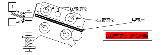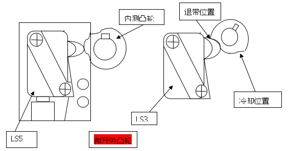 狀況二:不自動(dòng)出帶,遇到此情形時(shí),首先檢查“出帶長(zhǎng)度調(diào)整”是否在“0”處,然后在看穿帶過(guò)程是否正確,如果不行,則參考(下圖),LS5如在歸零狀態(tài)下,按點(diǎn)未能碰觸凸輪,則往內(nèi)調(diào)些即可,另外送帶滾輪附近卡住異物,亦造成此一情況。