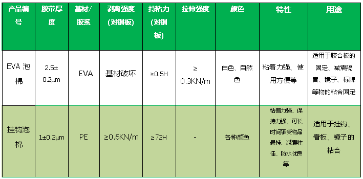 分類:按材質(zhì)分EVA和IXPE、PE三種;按持粘時(shí)間分普通和掛重級別二中;還有專門用于汽車裝潢用的汽車泡棉;