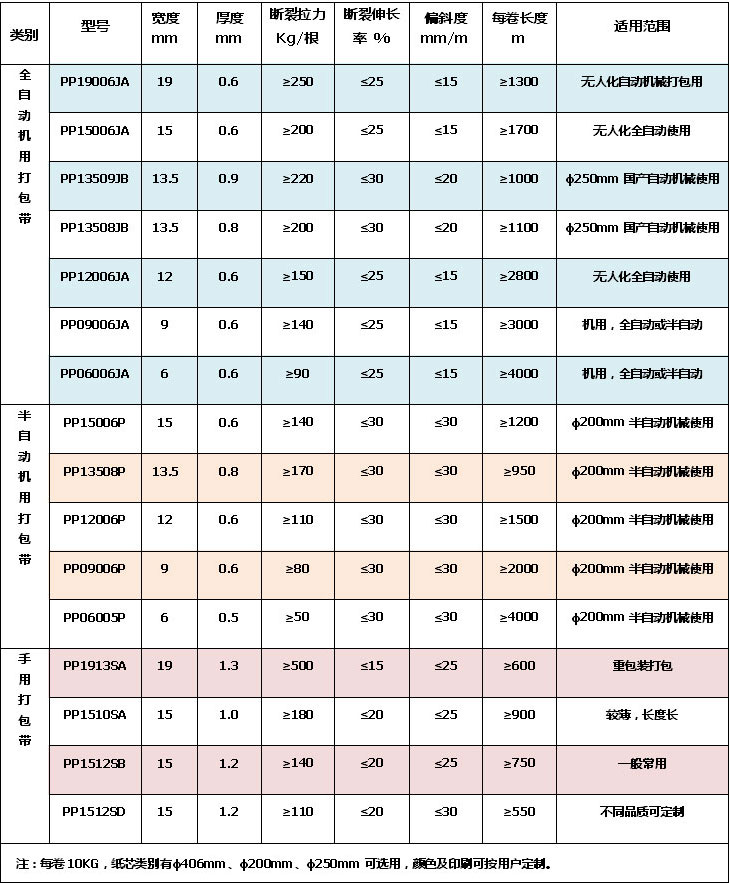 原材料完全采用全新純聚丙稀材料(無再生料)。產(chǎn)品機械物理性能穩(wěn)定,每米克重均勻,帶子寬窄及帶子厚薄穩(wěn)定;整體使用性能提高。